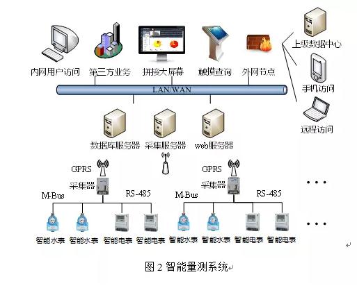 通信系統分為遠程通信和本地通信。遠程通信主要采用GPRS[2]協議,本地通信主要采用M-Bus總線。其中水表通過M-Bus[3]總線將數據傳至采集器,采集器與主站間采用GPRS實現數據交互。計量數據可以通過以太網滿足多種方式的內外網訪問。智能量測系統的構建,進一步豐富了反滲水處理系統廢水回收的科學手段,為醫院面向節能建設的頂層設計決策提供了有效的數據支持。